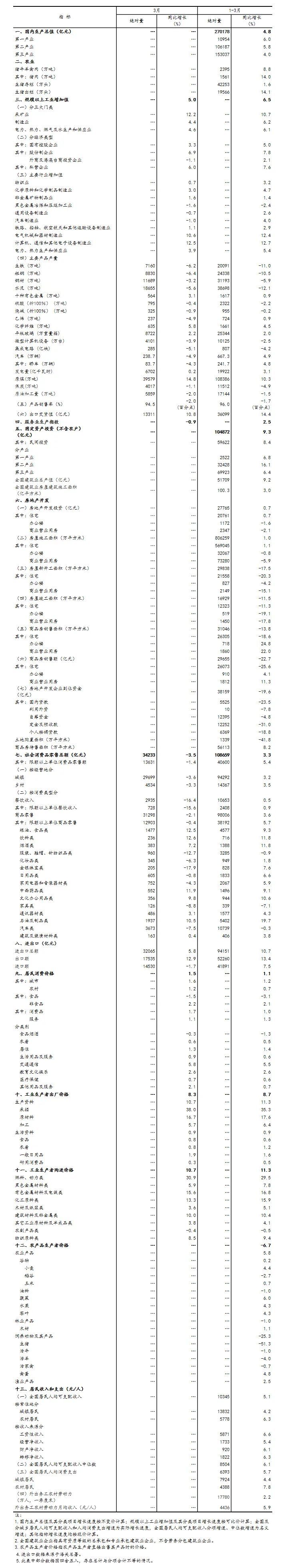 一季度國民經濟開局總體平穩(wěn)