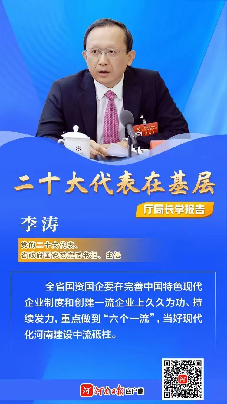 黨的二十大代表、省政府國資委黨委書記、主任李濤:做到“六個一流” 當(dāng)好中流砥柱